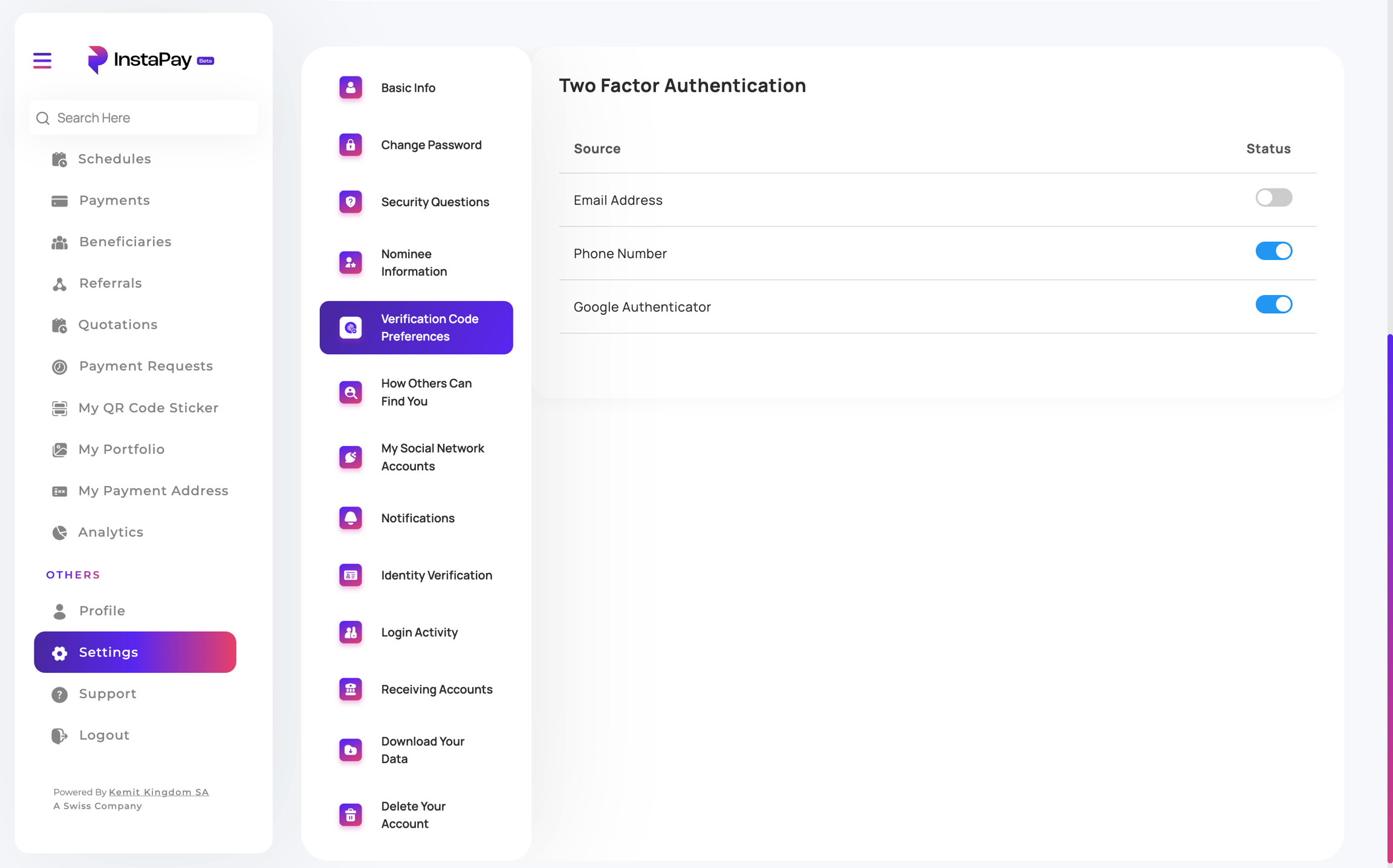 قم بحماية حسابك في إنستا باي عن طريق إعداد تطبيق جوجل موثِّق للمصادقة الثنائية (2FA). تضمن هذه الطبقة الإضافية من الأمان أن تظل حساباتك ومعاملاتك آمنة.