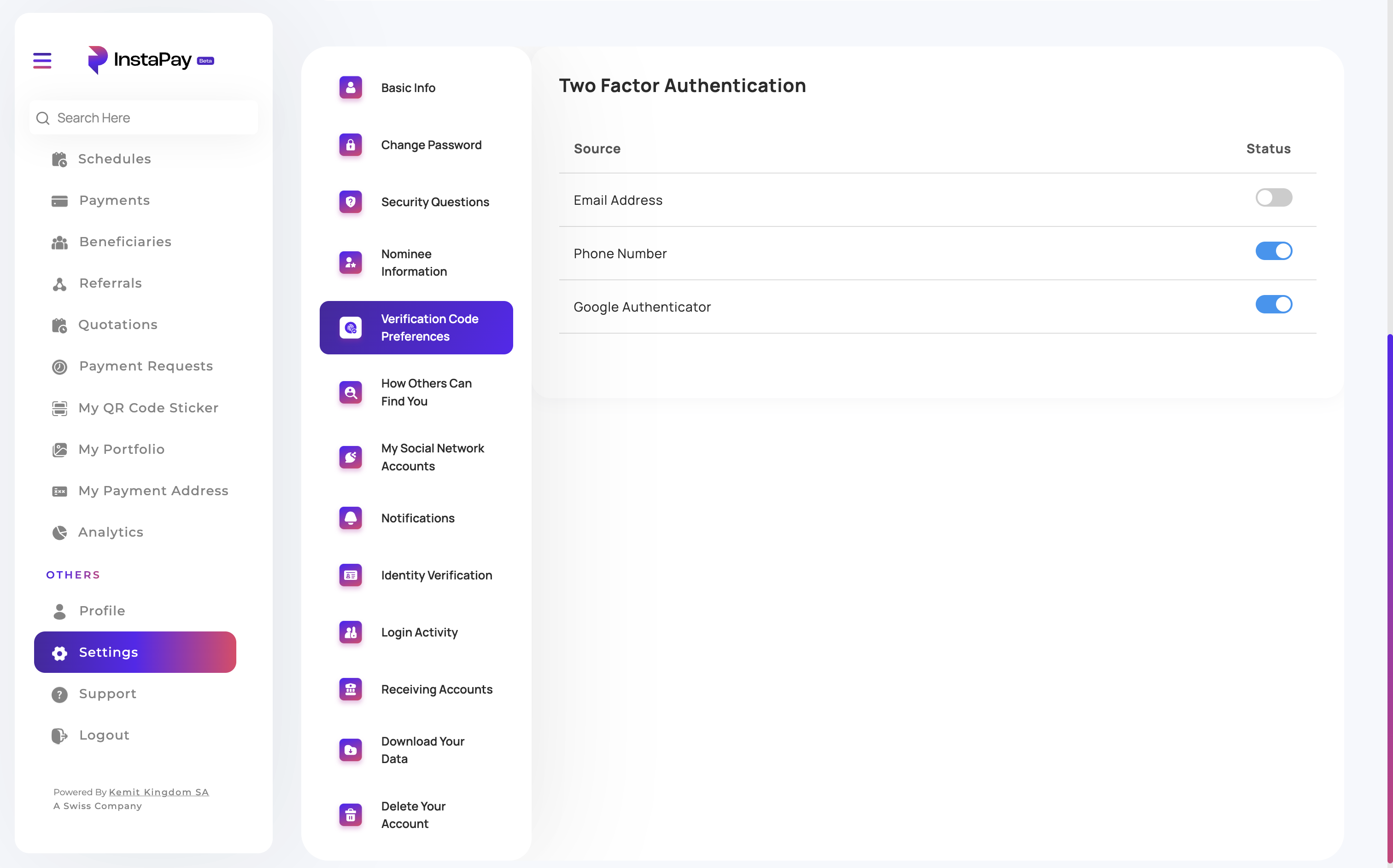 قم بحماية حسابك في إنستا باي عن طريق إعداد تطبيق جوجل موثِّق للمصادقة الثنائية (2FA). تضمن هذه الطبقة الإضافية من الأمان أن تظل حساباتك ومعاملاتك آمنة.