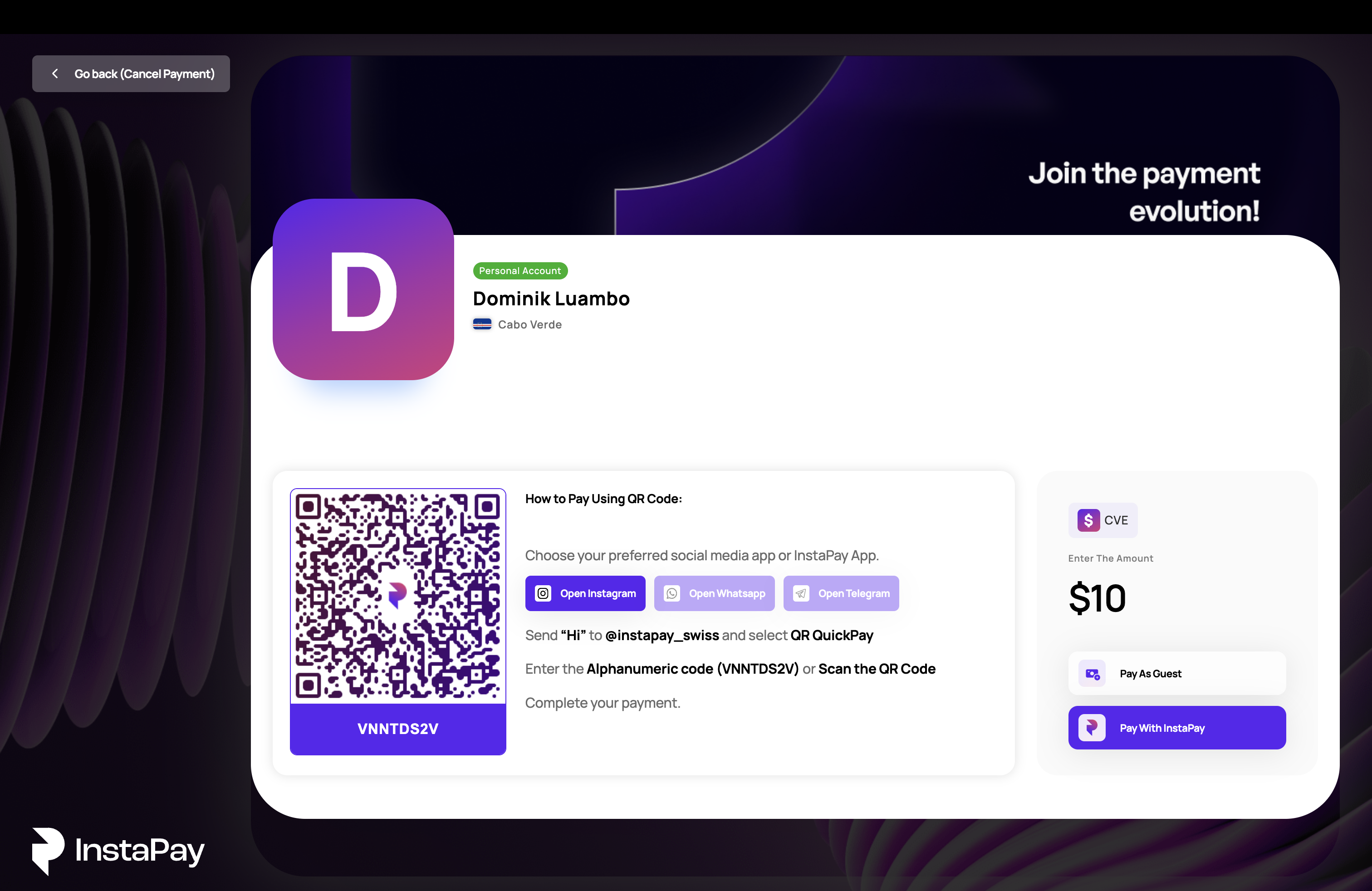 عنوان الدفع الخاص بك عبر إنستاباي هو رابط مخصص يمكنك من خلاله تلقي الدفعات على الفور من أي مكان في العالم. مثالي للمؤثرين، الفنانين، المستقلين، وأي شخص يرغب في تلقي الدفعات بسهولة. شارك عنوانك الفريد على ملفاتك الشخصية في وسائل التواصل الاجتماعي أو مواقع الويب أو مباشرة في الرسائل للحصول على الدفعات من خلال وسائل دفع متعددة، بما في ذلك محفظة إنستاباي، البطاقات الائتمانية، الحسابات البنكية، والمحافظ الإلكترونية. يمكنك تخصيص صفحة الدفع الخاصة بك عن طريق إضافة الخلفية، الصورة، العنوان، والوصف المفضلين لديك لعرض خدماتك بشكل مميز.