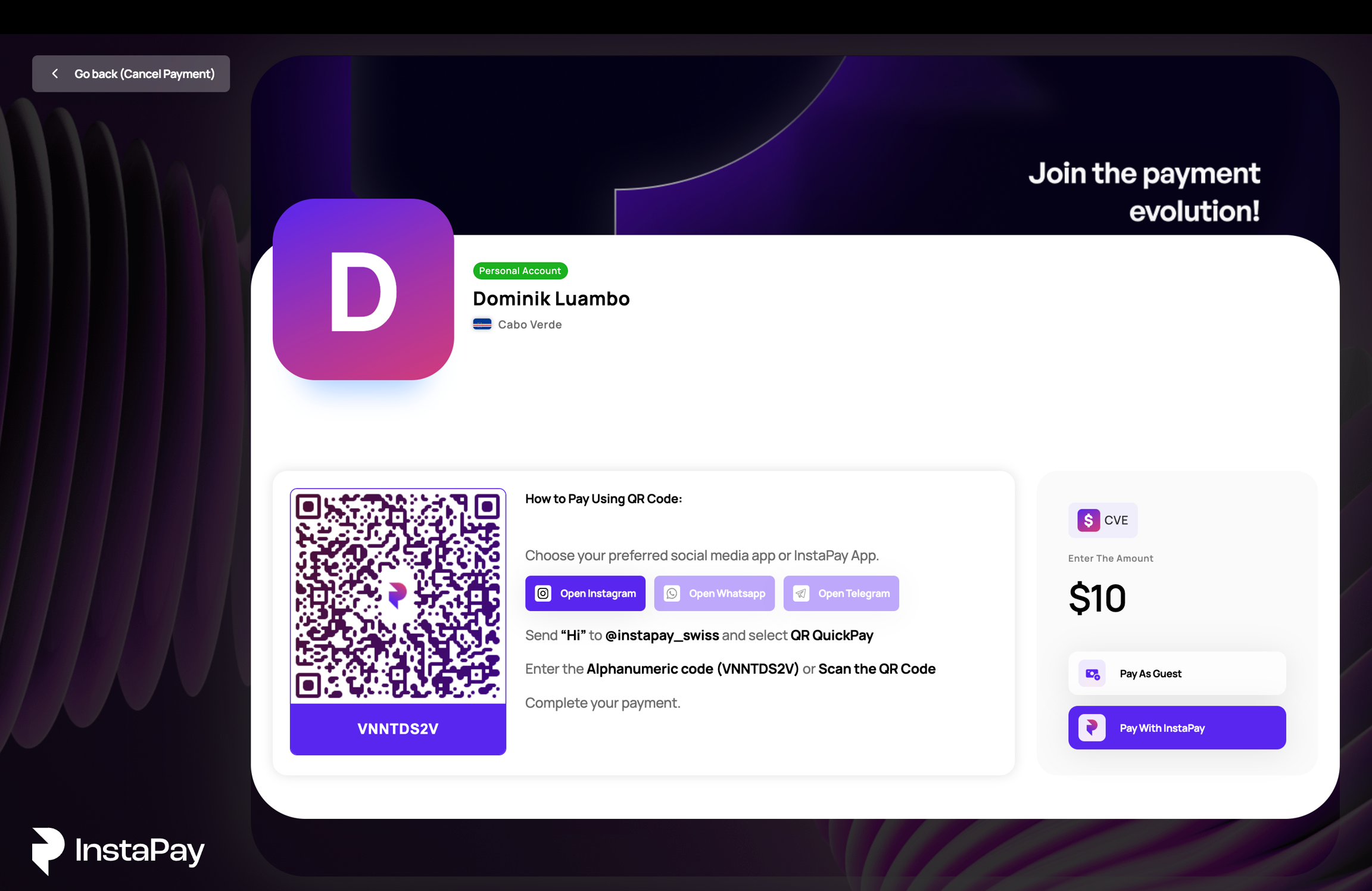 您的即时支付支付地址是一个个性化链接,使您能够从世界任何地方即时接收付款。非常适合影响者、艺术家、自由职业者以及任何希望轻松收款的人。您可以在社交媒体个人资料、网站或直接消息中分享您的独特地址,以通过各种支付方式收款,包括即时支付钱包、信用卡、银行账户和移动钱包。通过添加您喜欢的背景、图片、标题和描述来定制您的支付页面,以展示您自己和您的服务。