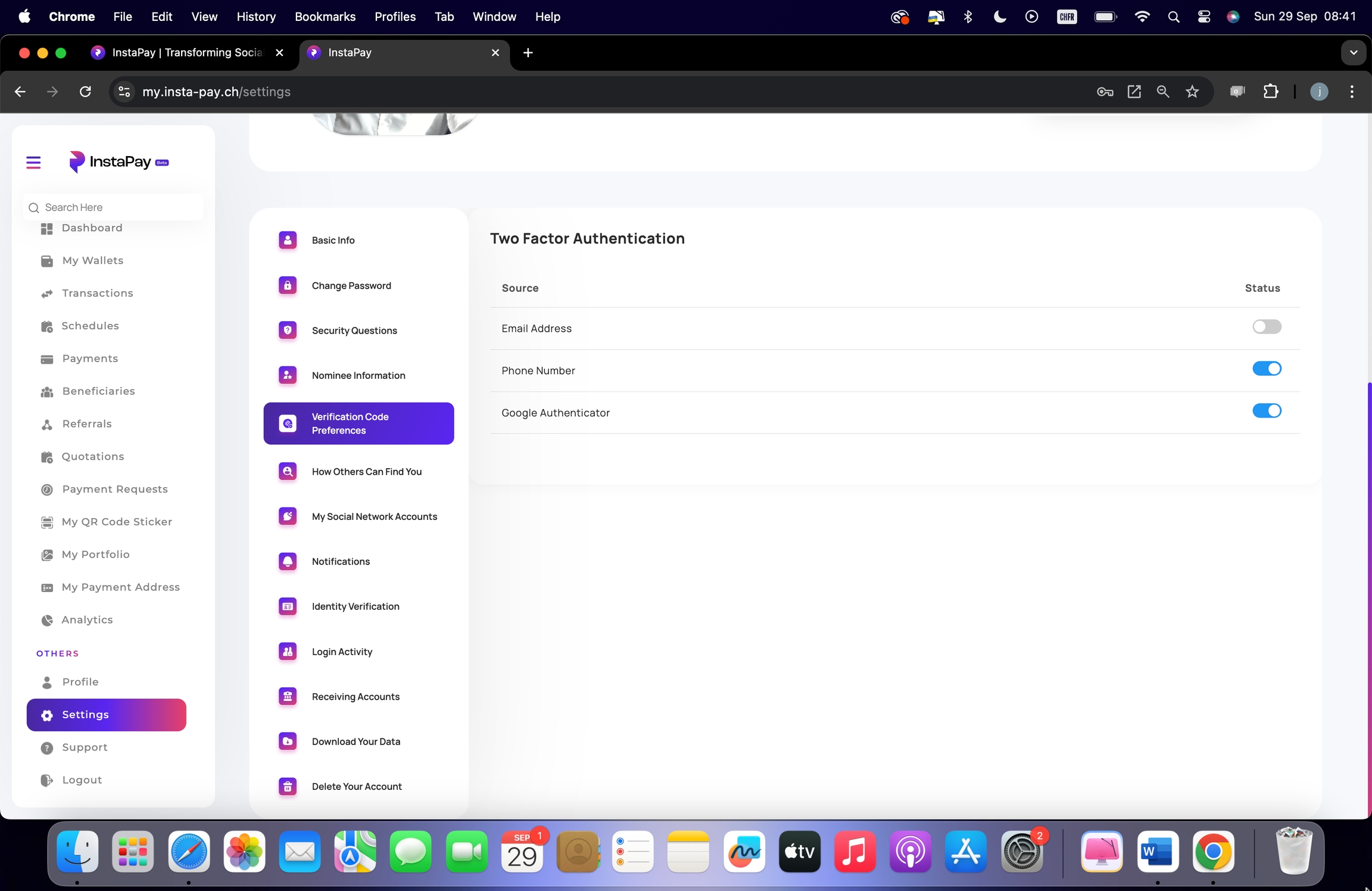 Navigate to Settings: Go to the "Settings" section in the InstaPay user dashboard.